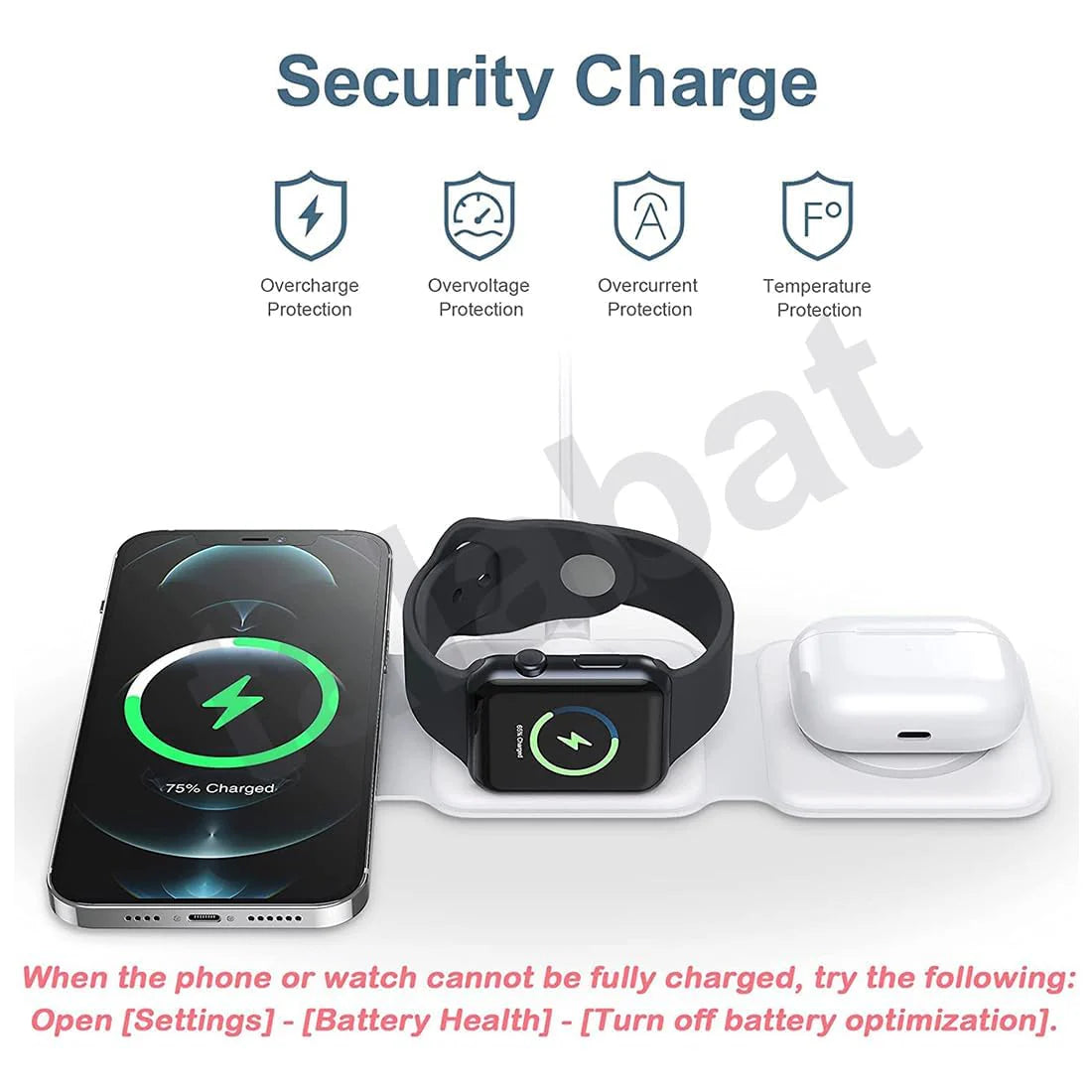 You’ll need a minimum 20W USB Type-C adapter to charge three devices simultaneously. (Adapter not included.)